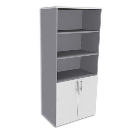SIMMOB Bibliothèque Haute aluminium porte basse, top Blanc perle EXPRIM - Dim. : L80 x H180 x P47 cm
