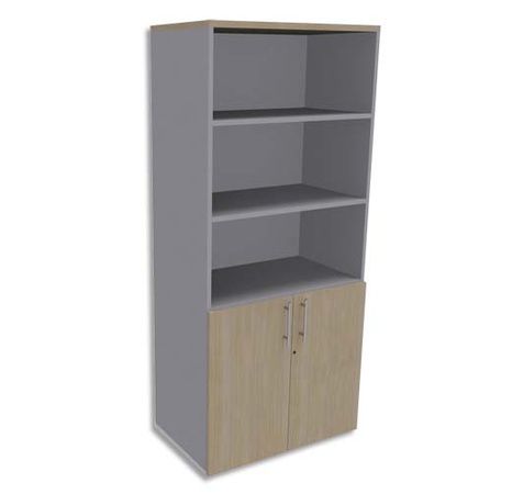 SIMMOB Bibliothèque Haute aluminium porte basse, top Chêne clair EXPRIM - Dim. L80 x H180 x P47 cm
