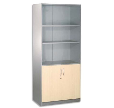 Bibliothèque Haute Ouverte 2 Portes Basses H180 X L80 cm Alu/Érable Gamme Alu Erable Ligne Opérative
