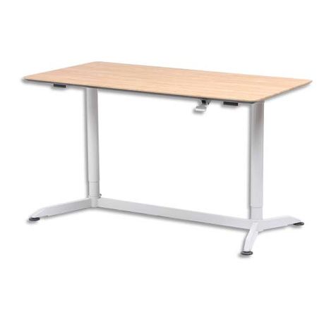 Bureau réglable en hauteur, plateau en MDF aile d'avion, piètement en acier avec vérins pour une bonne stabilité. Le réglage en hauteur se fait par vérin pneumatique grâce à la manette située sous le plateau. Hauteur variable de 71 à 117 cm. Fourni avec des roulettes pour le transformer en bureau mobile. LaRougeur 140 cm, profondeur 70 cm.