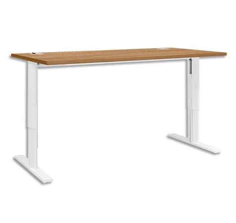 Bureaux piètements métal blanc, ajustable en hauteur lors du montage. Dessus en panneaux de particules mélaminés, décor trois finitions : Merisier (clair), Chêne Royal (foncé) ou blanc. Chants BAS 2mm de même finition. Piètements des bureaux en cier laqué époxy blanc. Hauteur ahustable de 62 à 85 cm.