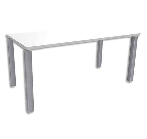 SIMMOB Bureau droit 4 pieds + raidisseur passe-câbles EXPRIM L160 x H72,5 x P80 cm Blanc perle alumi