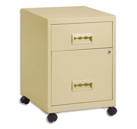 Fabrication monobloc en métal peinture époxy. Serrure à clé bloquant les tiroirs. Livré avec 4 roulettes pivotantes + kit de montage. Dimensions avec roulettes (L x h x p) 40 x 57 x 40 cm.