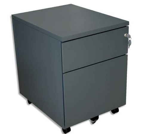 Fabrication monobloc en métal peinture époxy. Tiroir de rangement avec plumier amovible. Serrure à clé bloquant les tiroirs. Livré avec roulettes pivotantes + kit de montage. Dimensions avec roulettes (L x h x p) : 40 x 57 x 54 cm.