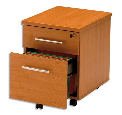 Caisson 2 Tiroirs À Roulettes Ligne Impact finition confort Dont 1P/Dos. Suspen - Merisier. Fermetur
