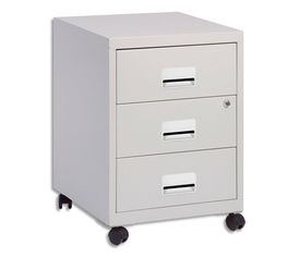 Fabrication monobloc en métal peinture époxy. Serrure à clé bloquant les tiroirs. Livré avec 4 roulettes pivotantes + kit de montage. Dimensions avec roulettes (L x h x p) 40 x 57 x 40 cm.