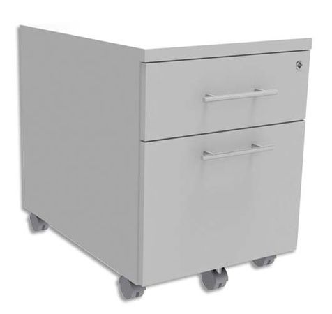 SIMMOB Caisson mobile 2 tiroirs + plumier, façade Blanc perle INEO - Dimensions : L42 x H56 x P50 cm