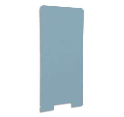 Cloisons de séparation textile largeur 60 ou 80 cm. Structure en panneau de particules 25 mm. Revêtement tissu 100 % polyester et mousse 3 mm. Socle en acier épaisseur 6 mm laqué blanc RAL 9003. Liaison par fermeture zippée blanche pour relier les cloisons entre-elles. Hauteur 170 cm, profondeur 3 cm. 5 coloris.