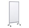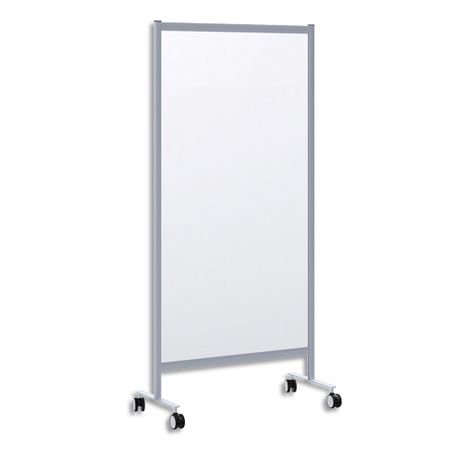 Cadre en aluminium anodisé. Panneau en PMMA épaisseur 3 mm. Pieds peinture époxy coloris aluminium, équipés de 4 roulettes pivotantes (dont deux avec freins). Vérins de réglage en hauteur pour la cloison double. Résiste aux produits désinfectants (eau de javel diluée, gel hydro alcoolique, lingettes nettoyantes...).