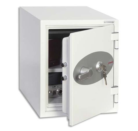 Résistance au feu selon les normes internationales NTFIRE 017-60 et MTC-DIP 120-60DM. Chauffés à 927°C durant 60 min, la température interne ne dépasse pas 177°C. (Le papier se consumme à 232°C). Protège le papier, les clefs USB et les CD. Les coffres ont également été testés contre les chutes de 9 mètres. La serrure digitale, de haute sécurité, peut être programmée par l'utilisateur avec un code jusqu'à 8 chiffres ou serrure à clé à double pannetons. Pourvu d'un écran LCD codé en couleurs, indiquant l'état de la batterie ainsi que les codes de saisie. Fixation au sol grâce à deux points d'ancrage.