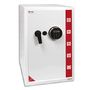 En acier monobloc, peinture haute qualité, résistante accrue à la corrosion. Diamêtre pêne 20 mm. Ouverture / fermeture selon modèle par serrure à clé (2 clés fournies) ou par serrure électronique (4 piles AA fournies) et poignée. Serrure d'urgence dissimulée. Angle d'ouverture de la porte : 90° maximum. Système d'éclairage intérieur par LEDs intégrées (x2 diamètre 5 mm), affichage écran LCD, fiche pour batterie de secours. Visserie de fixation fournie.