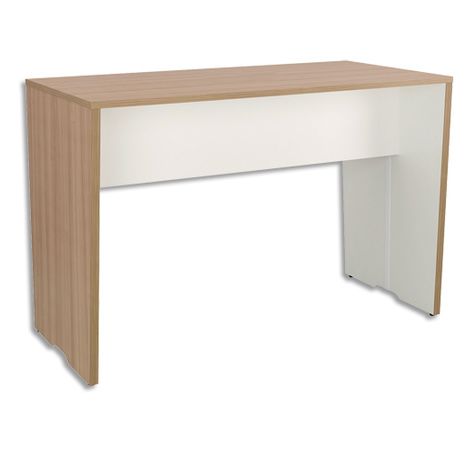 Table avec dessus en panneaux de particules surfacés mélaminés décor imitation merisier, chants ABS de 1 et 2 mm, décor de même finition. Prédéfonçage du plateau pour intégration de 1 ou 2 pose-câble et/ou boîtier à capot et 1 top access.
