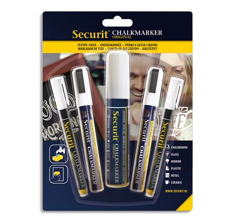 Blister de 5 feutres Mix - Pointe biseautée. - - 1 feutre largeur de trait 7-15 mm. - - 2 feutres largeur de trait 2-6 mm. - Pointe ogive. - - 2 feutres largeur de trait 1-2 mm.