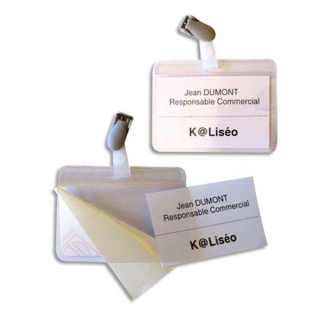 En PVC rigide transparent. Film auto-adhésif pour la plastification instantanée de photos, cartes de visite. Pince clip en plastique. Dimensions : 54 x 90 mm.