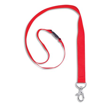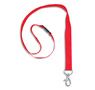 Boîte de 10 tours de cou avec mousqueton et clip de sécurité. Longueur 44 x largeur 1,5 cm. Rouge