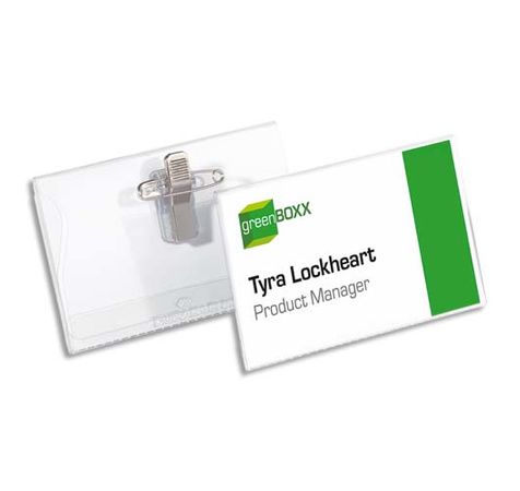 Boîte De 50 Portes-Badge + Pince Combi Double Fixation + Bristol Format L9 X P5,4 cm Transparent