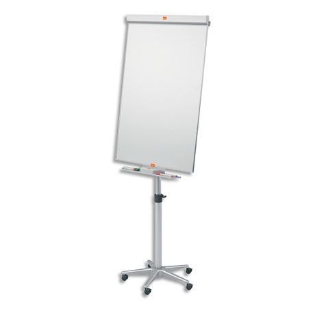Fond métal laqué magnétique (épaisseur 12 mm). Dimensions utiles tableau : 67,5 x 100 cm. Barrette pivotante en métal. Coloris bleu foncé. Crochets ajustables de 30 à 50 cm. Porte marqueur en métal. Coloris bleu foncé. Piétement étoile 5 roulettes (dont 3 à frein), réglable en hauteur de 175 à 200 cm. Ecriture avec marqueur effaçable à sec. Compatible avec toutes les recharges papier.