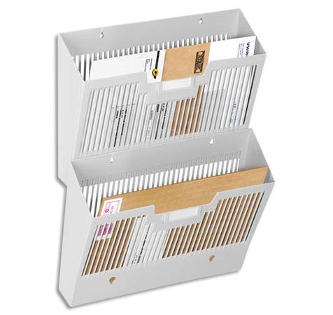 En polystyrène antichoc 100 % recyclable. Corbeille murale de grande capacité pour documents 24 x 32 cm. Parois avant et arrière ajourées pour une bonne visibilité du contenu. Bouche très large permettant d'accéder facilement jusqu'au fond du trieur. Equipée d'un porte-étiquette central. Les corbeilles peuvent se fixer en grappe ou séparément. Le fond plat permet également une utilisation verticale sur une surface plane.
