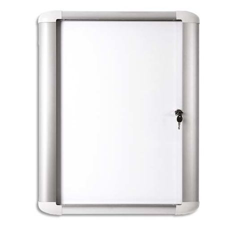 Fond acier laqué blanc magnétique pour une écriture effaçable à sec. Porte en verre trempé de 4 mm d'épaisseur avec serrure en façade et fermeture à clé - 2 clés fournies. Cadre en aluminium anodisé naturel. Ergot de fixation au mur qui permet de ne pas rester en contact contre l'humidité du mur. Coins arrondis et système de ventilation pour éviter toute condensation. Epaisseur utile de 18 mm. Profondeur intérieur totale : 57 mm.