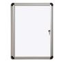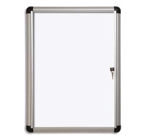 Fond acier laqué blanc magnétique pour une écriture effaçable à sec. Porte battante en acrylique et cadre en aluminium. Serrure en façade avec fermeture à clé - 2 clés fournies. Epaisseur utile de 11 mm. Profondeur intérieur totale : 23 mm.