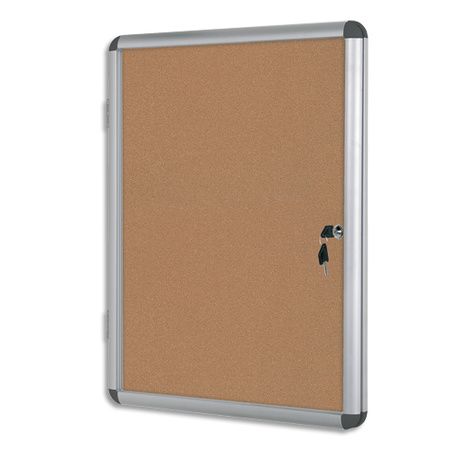 Vitrine avec fond en acier laqué blanc magnétique ou fond liège. Porte battante en acrylique et cadre en aluminium. Serrure en façade avec fermeture à clé - 2 clés fournies. Epaisseur utile de 18 mm. Profondeur intérieur totale : 35 mm.