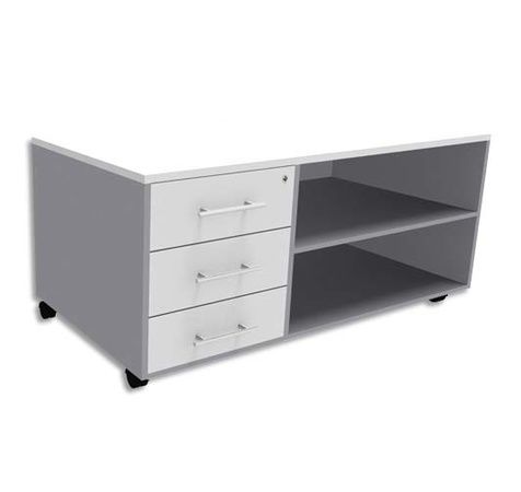 SIMMOB Console mobile + caisson 3 tiroirs + plumier EXPRIM - L120 x H63 x P60 cm Blanc perle alumini