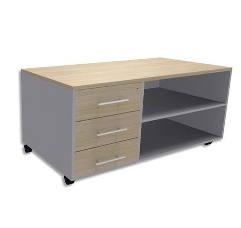 SIMMOB Console mobile + caisson 3 tiroirs + plumier EXPRIM - L120 x H63 x P60 cm Chêne clair alumini