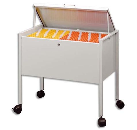 En acier avec revêtement époxy polyester protégeant des éraflures. Le couvercle et le bac totalement fermé protège efficacement les documents sensibles de la poussière et vous assure une sécurité complète de tous vos documents confidentiels. Capacité maximale de 50 dossiers suspendus dos en V. Equipés de 4 roulettes, dont 2 avec frein.