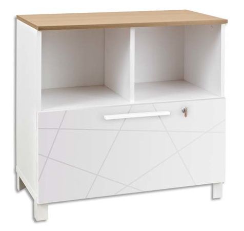 Rangement Bas Blanc Sunday, 2 Cases,1 Tiroir Blanc Graphique Pour Dossiers Suspendus Avec Serrure