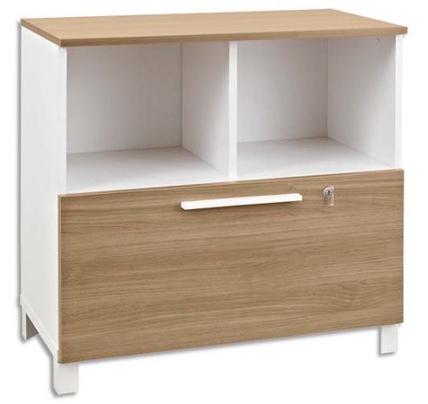 Rangement Bas Blanc Sunday, 2 Cases,1 Tiroir Chene Pour Dossiers Suspendus Avec Serrure