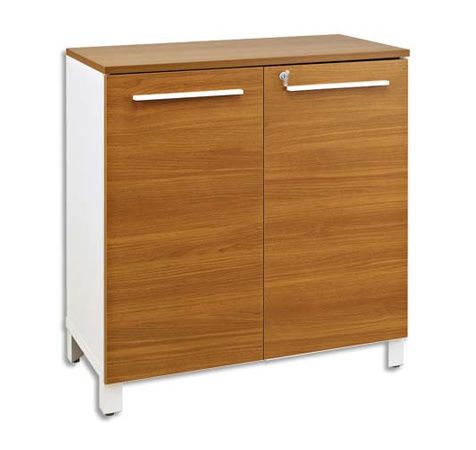 Rangement Bas Blanc,Façade Noyer,2 Portes,Serrure,1 Étagère Réglable Sunday-80X79X40cm