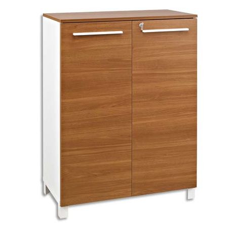 Rangement Mi-Hauteur Blanc, 2 Portes Noyer, Étagères Réglables, Serrure, Sunday 80X114X40cm