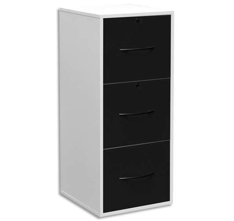 Classeur Mélaminé 3 Tiroirs Ligne MT3 Elégance Pour Dossier Suspendu Blc, Façade Tiroir Noir 42X101X