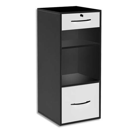 Classeur Mélaminé 2 Tiroir + 1 Niche Ligne MT3 Elégance Corps Noir Tiroir Blanc - Dim. L42 X H101 X