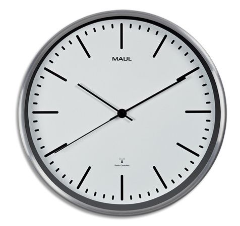 Horloge murale MaulFly fond Blanche cadran aluminium brossé, radiopilotée ø30cm