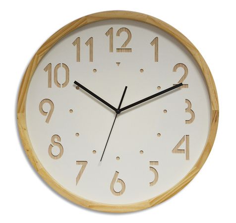 Horloge OSLO à cadran Blanc et Chiffre en Bois. contour bois. mouvement Quartz. D41.6 cm x P4.5 cm
