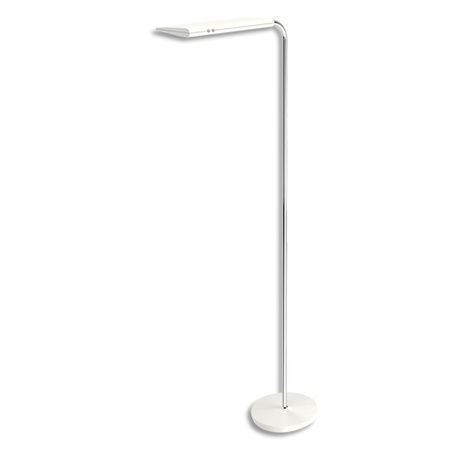 Tête en ABS pivotante pour un éclairage direct ou indirect. Fût chromé et base en métal. 2 interrupteurs sur la tête avec 1 variateur d'intensité de la lumière et 1 variateur de couleur d'éclairage. Base lestée. LED intégrées 40W, 4500 Lumen, 3 200 Kelvins. Garantie 3 ans.