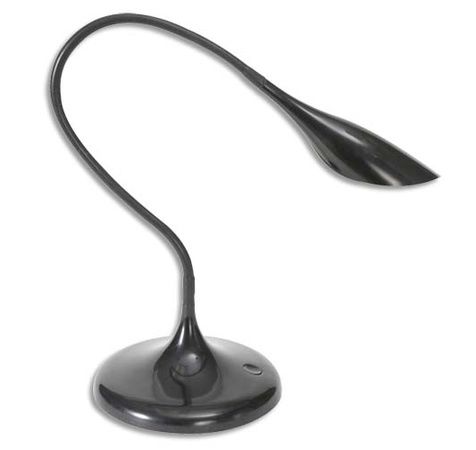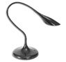 Commutateur sur socle. Tige 49 cm flexible en tout sens. Tête 17,5 cm équipée de LED intégrées, 3000 k lumière du jour, 200 lumens, 3 watts, 25 000 h. Base Ø 18 cm. Classe A. Noir