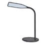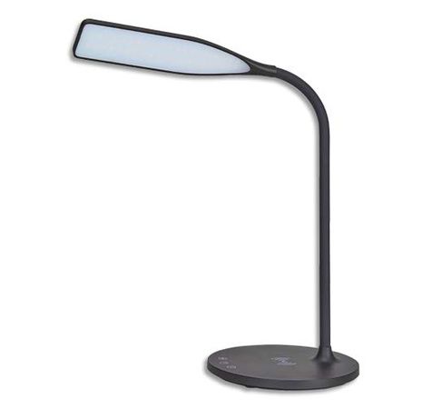 En ABS soft Touch noir. Ergonomique et pratique grâce à sa tête d'éclairage multi-orientable à 360°. Chargeur sans fil à induction sur la base pour recharger aisément votre mobile. Excellente répartition de la lumière grâce au plateau LEDs intégrées 6W longue durée 25000 h qui procure un éclairage de qualité 280 lumens. Variateur tactile 3 niveaux d'intensité de l'éclairage jusqu'à 6000 K. Arrêt automatique de la lumière après 40 minutes.