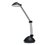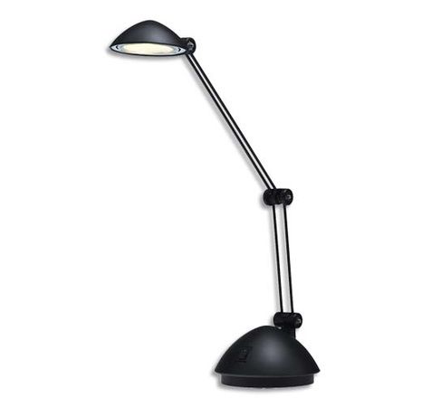 En métal et ABS. Bras de la lampe réglable en continu sur 2 articulations. Dimensions : Socle Ø 13 cm. Tête Ø 9,5 cm. Double bras 17 x 26 cm. LED intégrées classe énergétique "A". 300 lumens, 3W, 30 000 heures, 3000 kelvins.