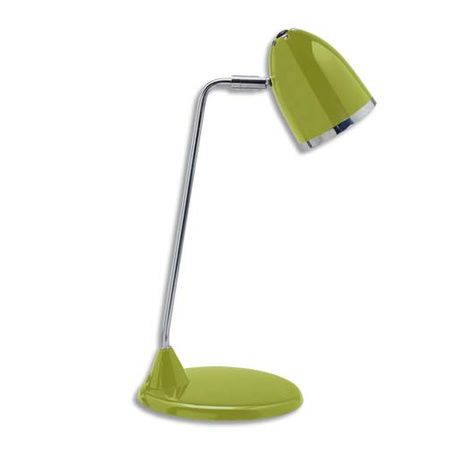 Bras métallique chromé. Bras : 31 cm. Hauteur : 29 cm. Tête Ø 9,5 x 12 cm, orientable sur 310° et inclinable sur 135°. Socle ovale 15 x 19 cm en acier laqué. Interrupteur sur le cordon. Livrée avec ampoule basse consommation de 8 watt, socle E27, 2700 kelvin blanc chaud, classe énergétique "A" (compatible avec des ampoules des classes énergétiques A+ à B). Consommation d'énergie pondérée : 8 kWh/1000h. 600 lux à 29 cm, 350 lumens. Coloris : Vert
