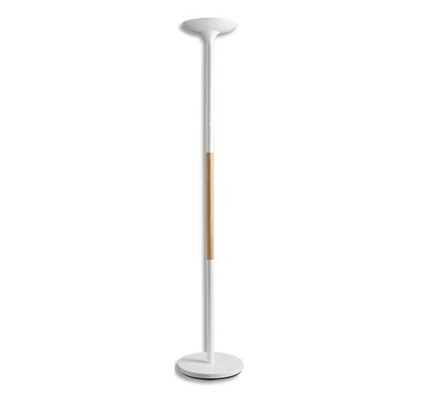 Bras, tête et socle en métal peint epoxy et fût en bois issu de forêts gérées de manière éco-responsable. Variation tactile 3 intensités sur le fût. Equipée de LED intégrées 40W, 40 000h, 4000 Lumens, 3500K. Classe énergétique A+. Dimensions : base 34 cm, hauteur 180 cm.