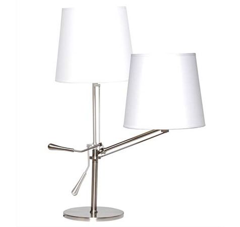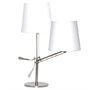Bras articulé en métal brossé avec poignée de préhension pour un mouvement aisé d'inclinaison de la lampe à volonté. Interrupteur sur cordon, Dimensions lampe : H 52 à 67 cm, abat-jour blanc en tissu véritable, H 22,5 x Ø 25 cm, socle Ø 19 cm. Equipée d'une ampoule LED 805 lumens, 12 W, E27. Classe A.