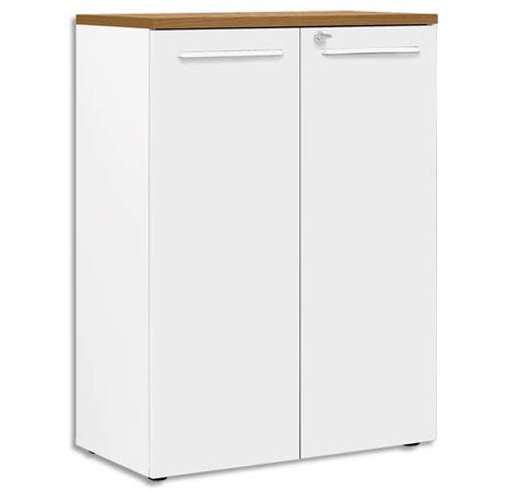 Rangement mi-hauteur 2 portes pleines Yes façade Blanche et dessus Merisier L80 x H109 x P42 cm