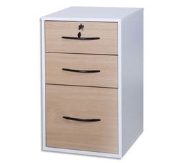264906 : 3 tiroirs : 2 tiroirs de bureau et 1 tiroir pour dossiers suspendus. Hauteur 69cm. 1 serrure pour le premier tiroir.