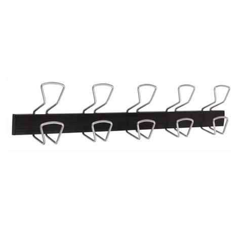 Bloc de 5 patères doubles en métal pouvant supporter jusqu'à 10 kg par double patère. Se fixent facilement grâce aux 2 vis et 2 chevilles. Bandeau noir ABS.
