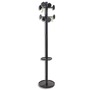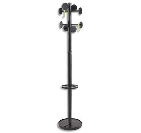 En métal et ABS. Large diamètre : 8 patères ABS et 2 crochets additionnels pour accessoires. Base lestée pour une stabilité optimale. Large fût en métal. Porte-parapluies. Hauteur : 176 cm. Base : Ø 38 cm.