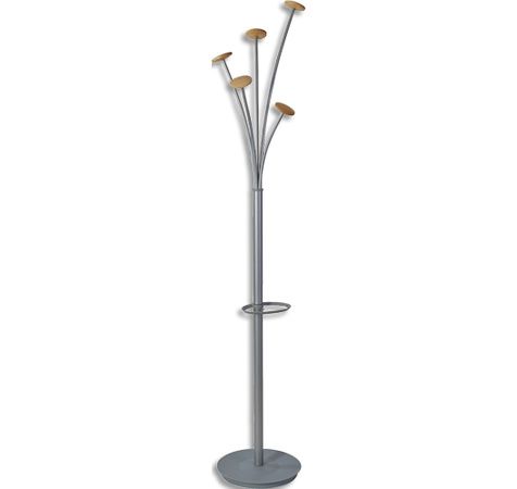 Base lestée 5 kg pour la stabilité Ø 38 cm avec réceptacle d'eau. Porte-parapluies design.Tube métal. 5 patères arrondies.