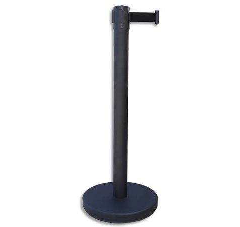 Poteau Noir Reco + Sangle Noire Rétractable De 2 Métres Avec Frein - Base D32 cm, Hauteur 91 cm