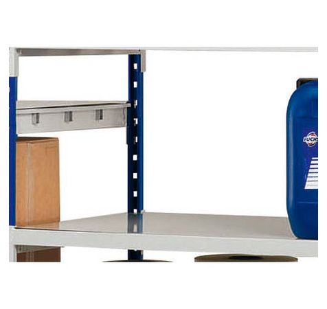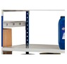 Structure en acier 12.5/10ème finition époxy bleu avec pied métal perforé pour une éventuelle fixation au sol. 3 tablettes claires voies en acier 10/10ème finition epoxy gris, composées de longerons de section 40 x 20 ép. 10/10ème, et d'équerres 12/10ème, blocage par goupille de sécurité. Fixation des tablettes par connecteurs 3 griffes. Tablettes réglables tous les 5 cm, charge utile : jusqu'à 300 Kg par tablette. Livré à plat, montage facile par simple emboîtement. Possibilité d'ajouter un ou plusieurs éléments pour constituer des rayonnages illimités. Hauteur : 200 cm. Options : -1 tablette claire voie supplémentaire, lot de 3 plaques métal et lot 3 plateaux Isorel. 2 modèles :